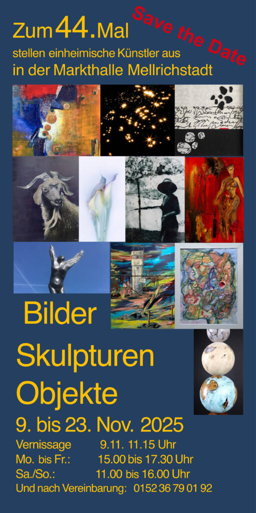 news Im November werde ich an der Gemeinschaftsausstellung in Mellrichstadt teilnehmen.I’m looking forward to take part at the group exhibition in Mellrichstadt.